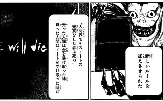 아니 뭐 확실히 데스노트를 매매한다는건 분명 위험천만한 계획이긴 했지만「아무도 불행한 일을 당하지 않고 이 소동을 끝냈다」하고 성취감에 젖은 채로 돈을 만진 순간 사망이라니 너무 불합리하다...