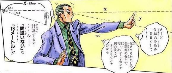 대상(이 경우 죠스케)의 겉보기 크기와 실제 크기의 비율에 팔 길이를 곱해서 산출하기 때문에, 당연하지만 거리가 멀어질수록 오차는 커짐.