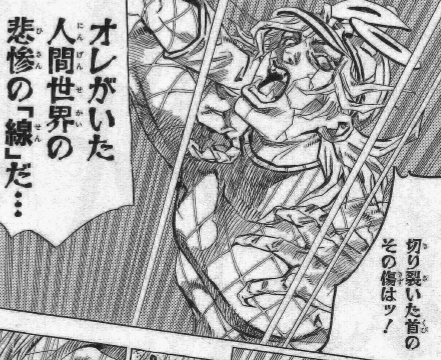 ·목에 난 그 상처는! 내가 있던 인간세계의 비참한 『선』이다... WRYYYYYYYY─── 그리고 이게─! 그걸 초월한 『선』! 바로 내가! 손에 넣을 이 세상으로의 『선』이다!