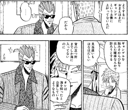 초기 아카기는 그저 마작을 잘할 뿐인 평범한 아저씨로밖에 보이지 않는다