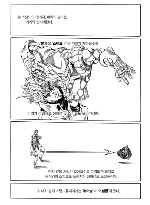 7부의 스탠드 설명 코너에서 스탠드의 파워는 거리에 반비례한다는 이야기를 한 후