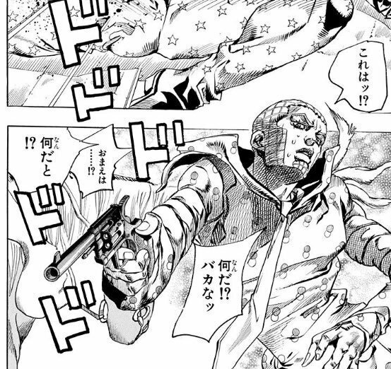 죠르노가 바나나를 권총으로 바꾸는 장면