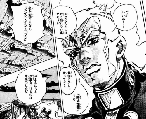 메이드 인 헤븐 능력의 본질은 전 인류에게 각각의 미래를 「인지시키고」 「각오」하게 만드는 것.