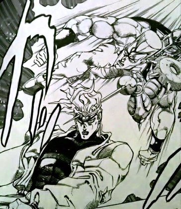 DIO가 치명타를 받을 수 있는 한순간을 노려 찌를 수 있는