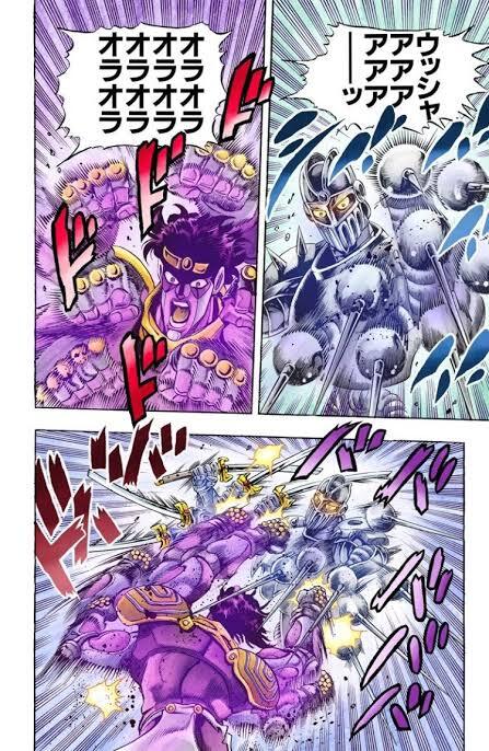 그 고속 전투를 따라가서 암살할 수 있는 유일한 타이밍을 찾아서, 죠타로가 죽었을지도 모른다는 절망적인 상황에서도 분노에 휩쓸리지 않고 냉정하게 공격을 가하는 폴나레프는 사실 너무너무 대단한 거지...
