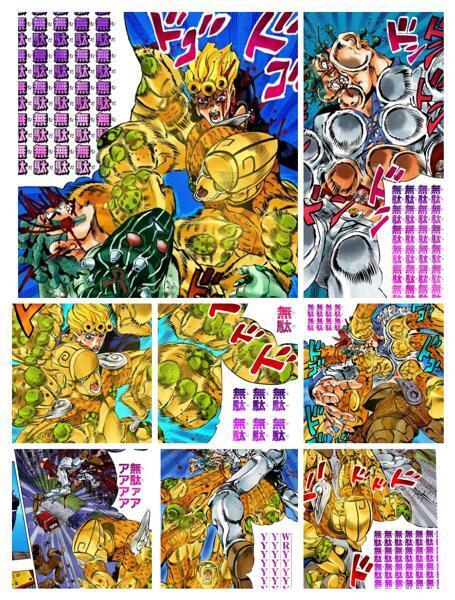 사실 죠르노가 스탠드로 인간을 직접 때리는 장면은 블랙사바스 이후로는 초콜라타에게 7쪽 반 무다무다 러시를 날릴 때 정도뿐임.