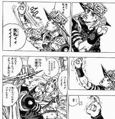 죠죠의 개그씬은 대체로 이게 뭔가 싶으면서도 점점 서서히 웃음이 터지는 느낌의 개그지.