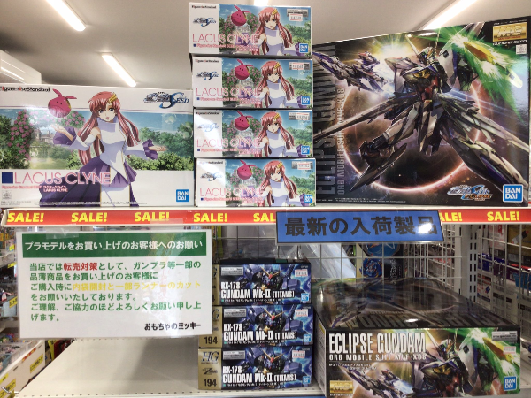 우리 점포에서는 되팔이 대책으로 건프라 등 일부 품귀 상품을 구입하신 고객에게