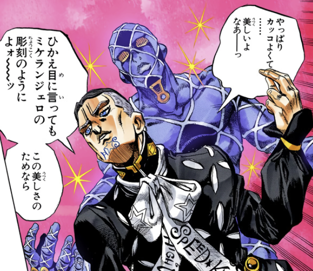 비열한 것 같지만 적극적으로 살인하려는 걸 싫어하고(작중 죽인 건 케이초 한 명뿐, 하자마다에게도 죽이라고 얘기하진 않음) 죠셉처럼 확실하게 위험이 될 때만 적극적으로 나섰고 죠스케와 싸우다 진 것도 우스워 보이지만 치밀함이 제대로 보임.