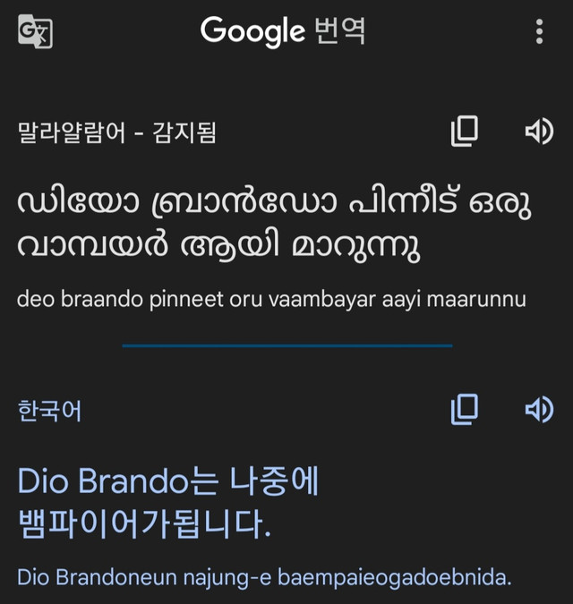 대니 너 Dio Brando는 나중에 뱀파이어가 됩니다 를 말라얄람어로 말할 수 있구나!! 대단해!!