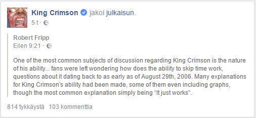 가수 킹 크림슨의 음악은 정신분열에 관한 게 많지