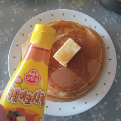 TMI지만 팬케이크 소스는 메이플시럽 뿌리려다 오뚜기 걸 썼어.