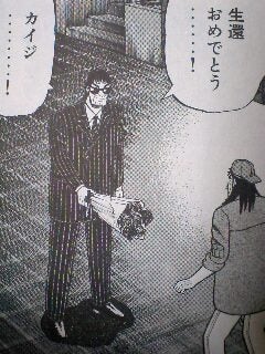 다리 건너기에서 카이지가 다 건너왔을 때의 흑복 일동의 리액션.