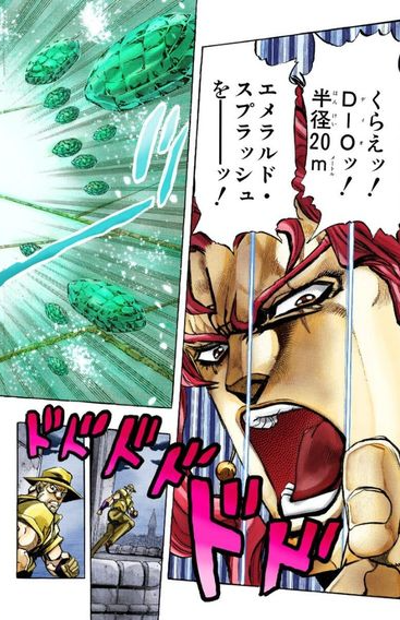 「그리고 받아라, DIO!! 반경 20m, 에메랄드 스플래시를!!」