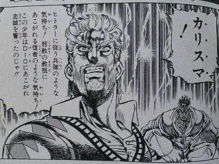 히틀러를 따르는 병사 같은 마음, 사이비 종교의 교주를 동경하는 신자 같은 마음을 불러일으키는 개성으로 취급됨.