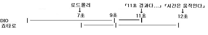 최종적으로 DIO는 11초, 죠타로는 3~4초.