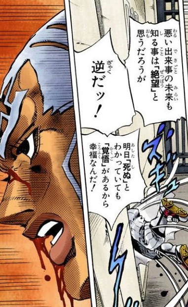 미래를 깨닫게 된 (죠죠에서 푸치신부가 말하는 천국 같은 상태) 사람이 나옴.