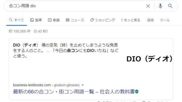 미팅 용어로 『그 사람은 DIO야』 라는 말이 있다고 하는데, 그게 (분위기를 읽지 못해서 그 자리의 대화를 멈추게 만드는 사람) 이라는 의미인 것 같아. DIO는 울어도 좋다고 생각해.