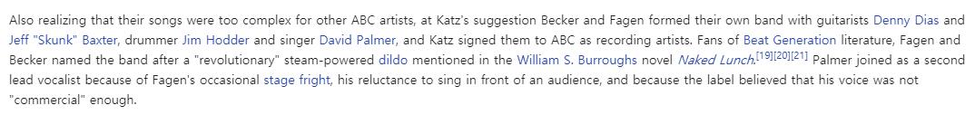 스틸리 댄이라는 이름의 밴드명에서 유래된 건 알고 있었지만