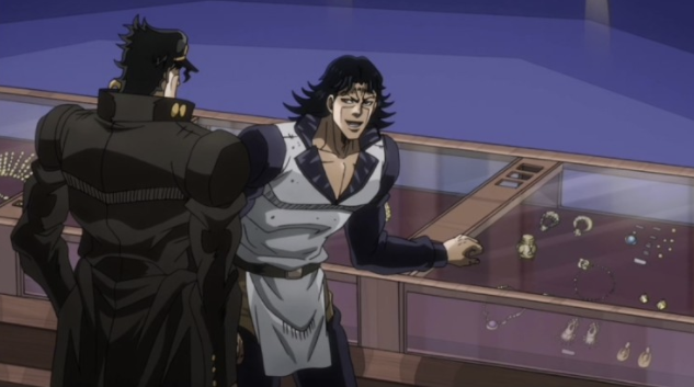 러버즈전에서 평범하게 유리창을 통과해서 시계를 잡는 스타 플라티나