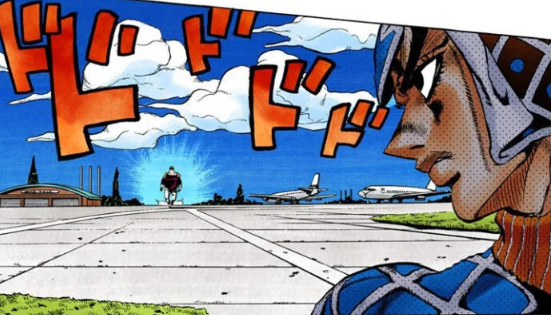사정거리 범위 안에 들어가기 전에 총맞아서 죽었지만, 총격당하고 나서 스탠드 내놨던걸 보면