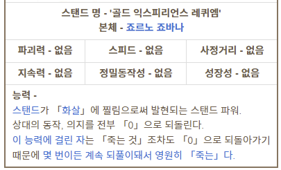스탠드표에 나오는 스펙도 너무 무서움