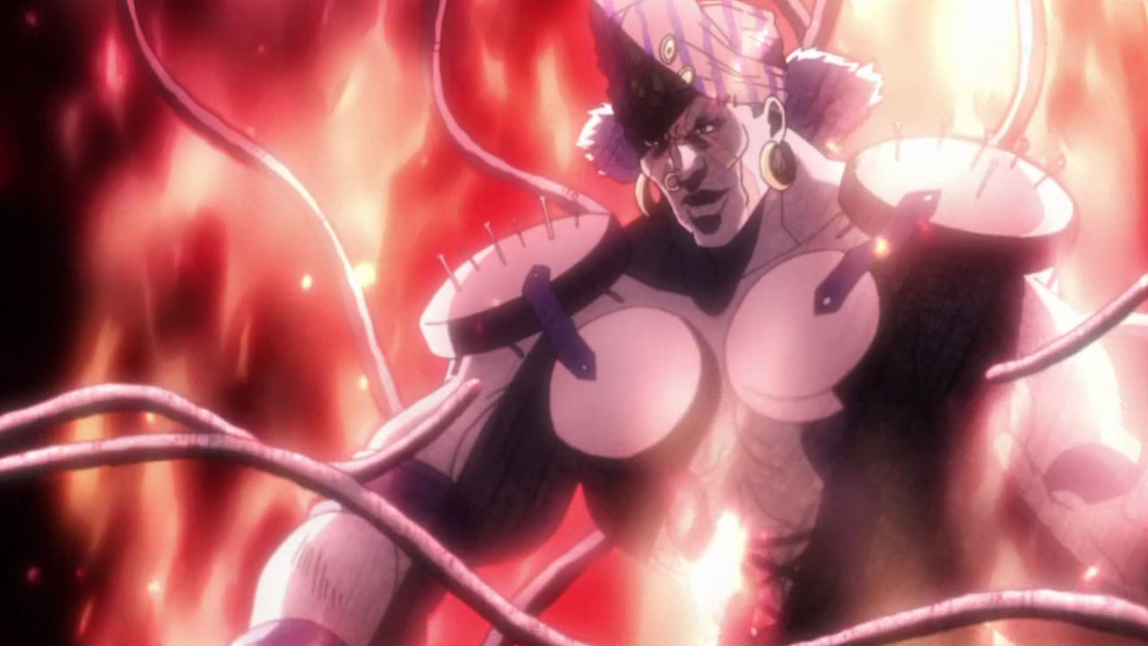 아무리 디오가 흡혈귀 중에서 강하다고는 해도 기둥속 사내 앞에서는 그저 먹이에 지나지 않는다고 생각한다.