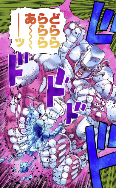스타 플라티나가 오라오라 하면서 시어하트어택을 팔꿈치와 무릎으로 퍽퍽 쳐대고 있는 장면 봤을때는 무의식적으로 웃어버렸다