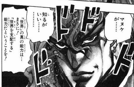 뭐 6부의 DIO도 (이녀석은 아마 이런말 좋아하겠지) 라던가 (뭐 더월드가 최강이지만) 같은 생각 안했을 거라고는 말 못하겠지만.