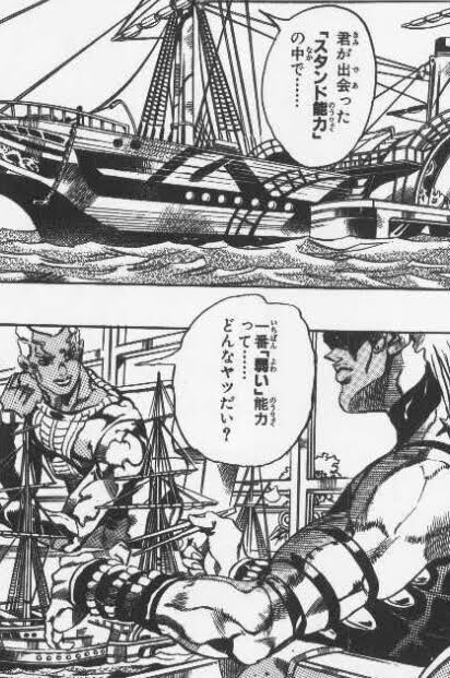 뭐 원래 저 6부 짤에서의 장면은, 첫 번째 질문이「가장 약한 스탠드는 뭐야?」 였으니까