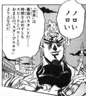3부 DIO「더 월드는 최강의 스탠드다. 시간을 멈추지 않아도 스피드와 파워에서 스타 플라티나보다 우월하지.」