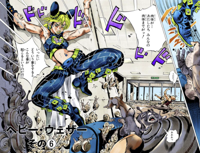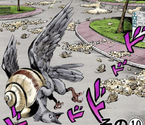 개구리를 내리게 하거나 달팽이로 변화시키거나 해서, 스테이지 특수 효과 같은 느낌을 연출하는 것이 아라키다움이 가득해서 좋지...