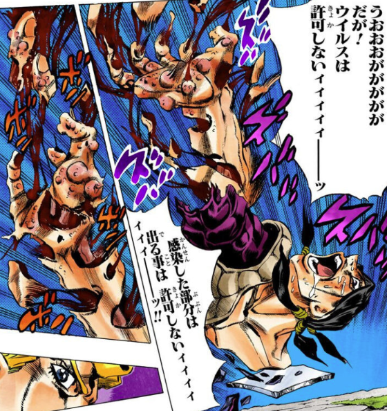 죠죠 캐릭터들 중에서도 톱클래스로 그로테스크한 죽음이었다