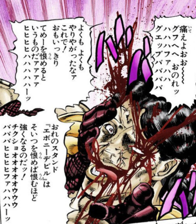 오히려 상대한테 그정도로 고통받지 않으면 원망 파워로 스탠드를 사용할 수 없을 정도로 마음이 넓은 사람이라서 그렇다는 설 좋아합니다