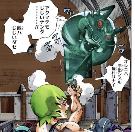 스탠드가 딱히 영감을 따르지 않는 자유의지를 가지고 있는 데다가, 상대방한테 풍수 정보를 가르쳐 주기도 하고, 본체가 재기불능이 되어도 여유롭게 떠다니는 걸 보면 왠지 스탠드가 폭주해서 본체를 거스르고 있는 것처럼 보이기도 하다.