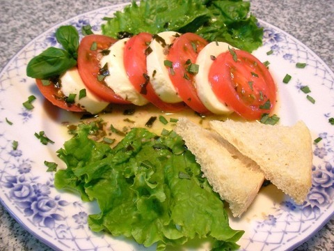 이 치즈+토마토 요리는 카프레제라고 불렀던가.
