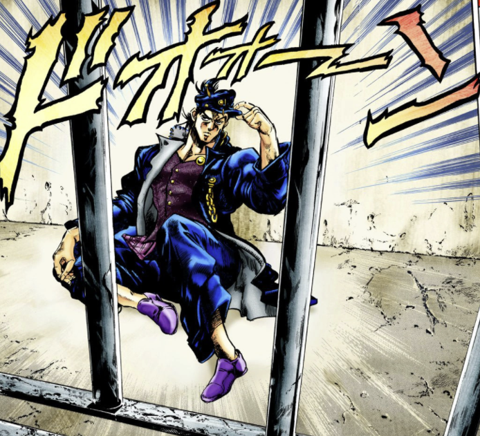 DIO를 쓰러뜨린 것에는 후회 한 점 없겠지만, 그 행동이 원인이 되어 일어나는 여러가지 성가신 일에 아무도 말려들게 하고 싶지 않은 상냥함과, 타인에게 빚을 지고자 하지 않는 부담감이 이러한 단독행동을 일으킨 원인 중 하나일지도.