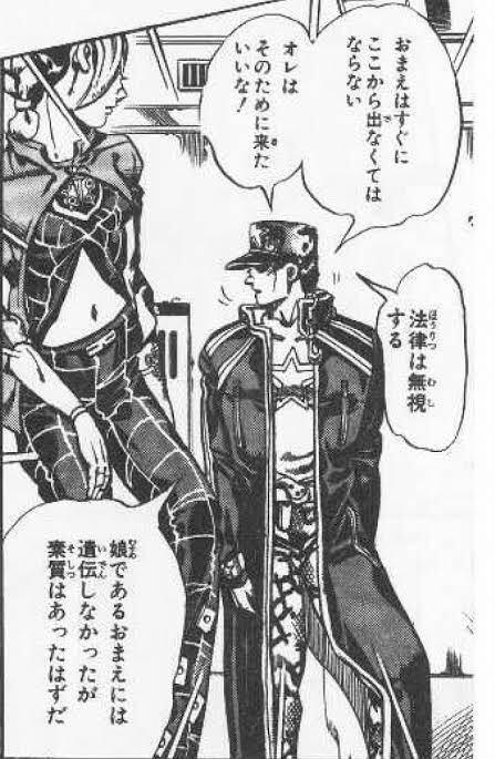 아라키적으로는 딸을 구하는 일에 법적인 문제를 하나하나 신경쓰는 남자는 고려할 가치도 없다고 생각함