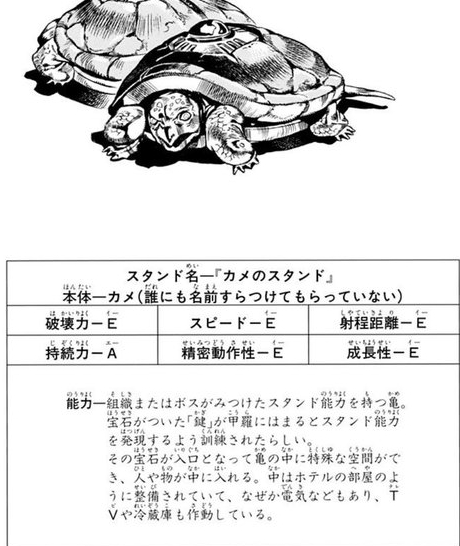 단행본에서는 「거북이의 스탠드」라고 나오는데?