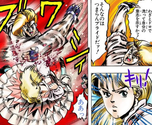 때릴 걸 알고 있는데도 겁먹지 않고 DIO를 노려보는 부분은 정말로 긍지가 느껴져서 좋다